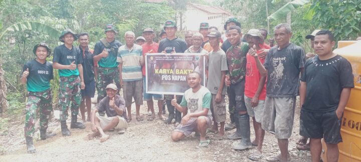 Kefamenanu – Pemerintah Desa Banain B, Kecamatan Bikomi Utara, Kabupaten Timor Tengah Utara (TTU), menggandeng Tentara Nasional Indonesia (TNI) dalam pelaksanaan kegiatan rabat jalan di wilayah dusun setempat.Kegiatan tersebut merupakan bagian dari program peningkatan infrastruktur desa yang bertujuan memperlancar akses masyarakat serta mendukung kemajuan ekonomi di wilayah pedesaan.